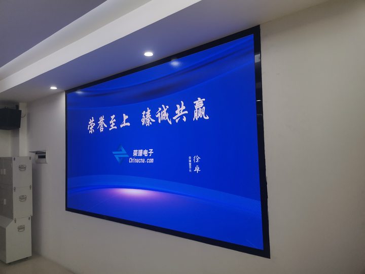 本項目案例是我公司(榮臻電子)在吉林某單位會議室安裝的一個P2.5小間距全彩顯示屏項目,項目的具體展示效果如下: